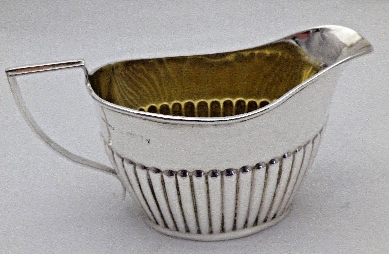 1896 Antique Sterling Solid Silver Half Fluted Style Cream Milk Jug