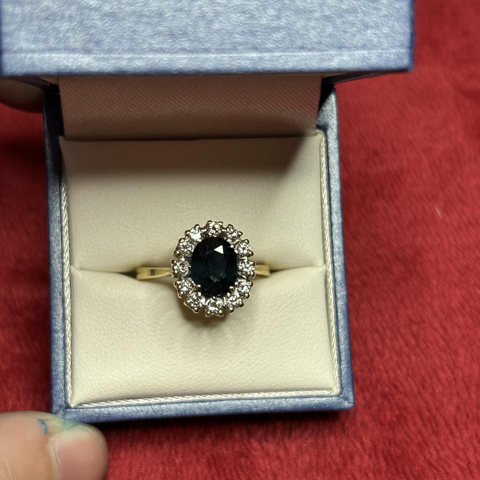 18ct Gold, 2.5ct Sapphire & 0.25ct Diamond Cluster Ring, Fully Hallmarked