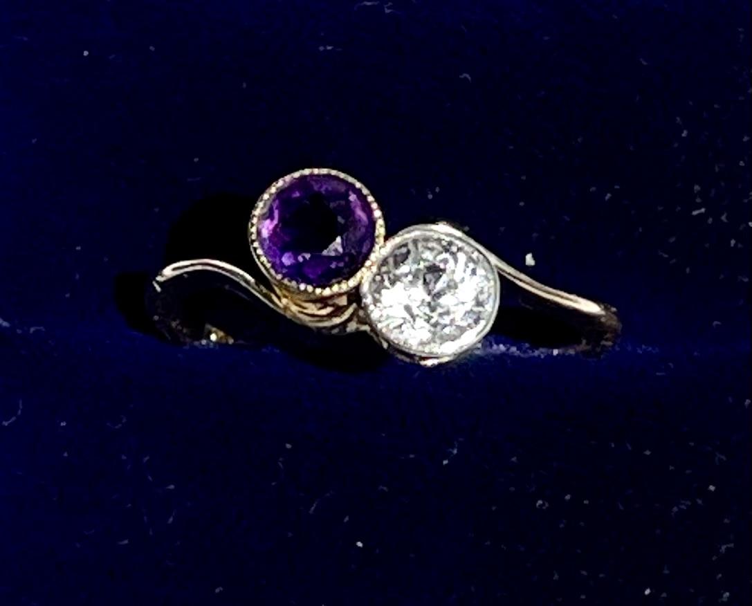 18ct Gold Amethyst & Simulated Diamond Cross-Over Ring