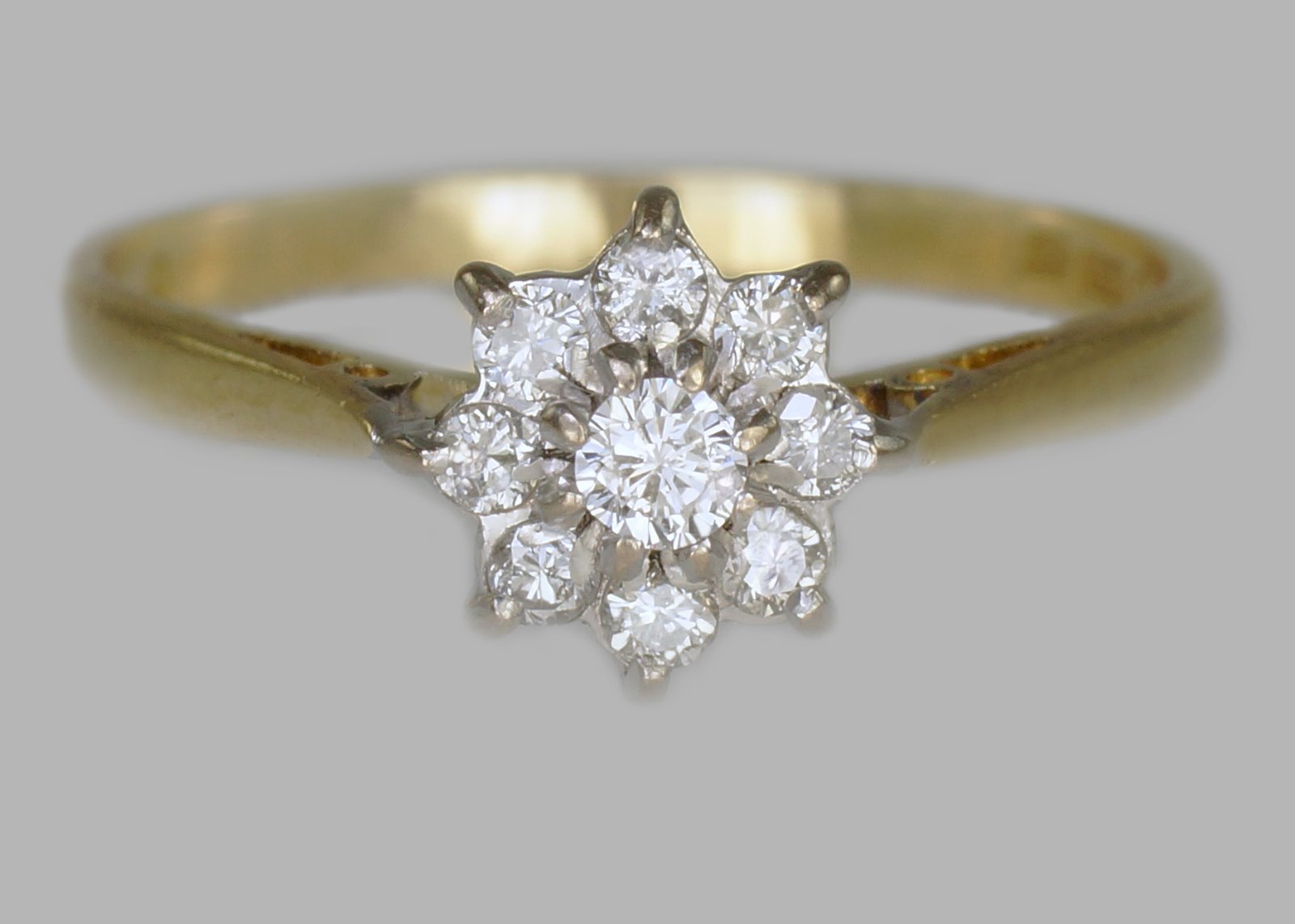 18ct Gold Diamond Cluster Ring. Vintage 0.50ct Diamond Engagement Ring