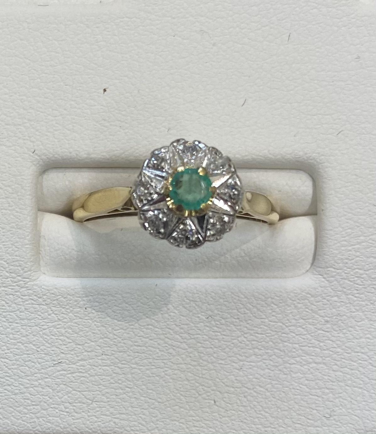 18ct Gold Emerald & Diamond Cluster Ring