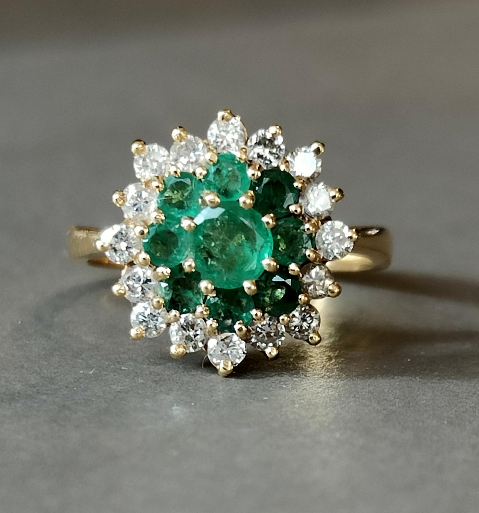 18ct Gold Emerald & Diamond Vintage 1970s Cluster Ring (1 of 11)