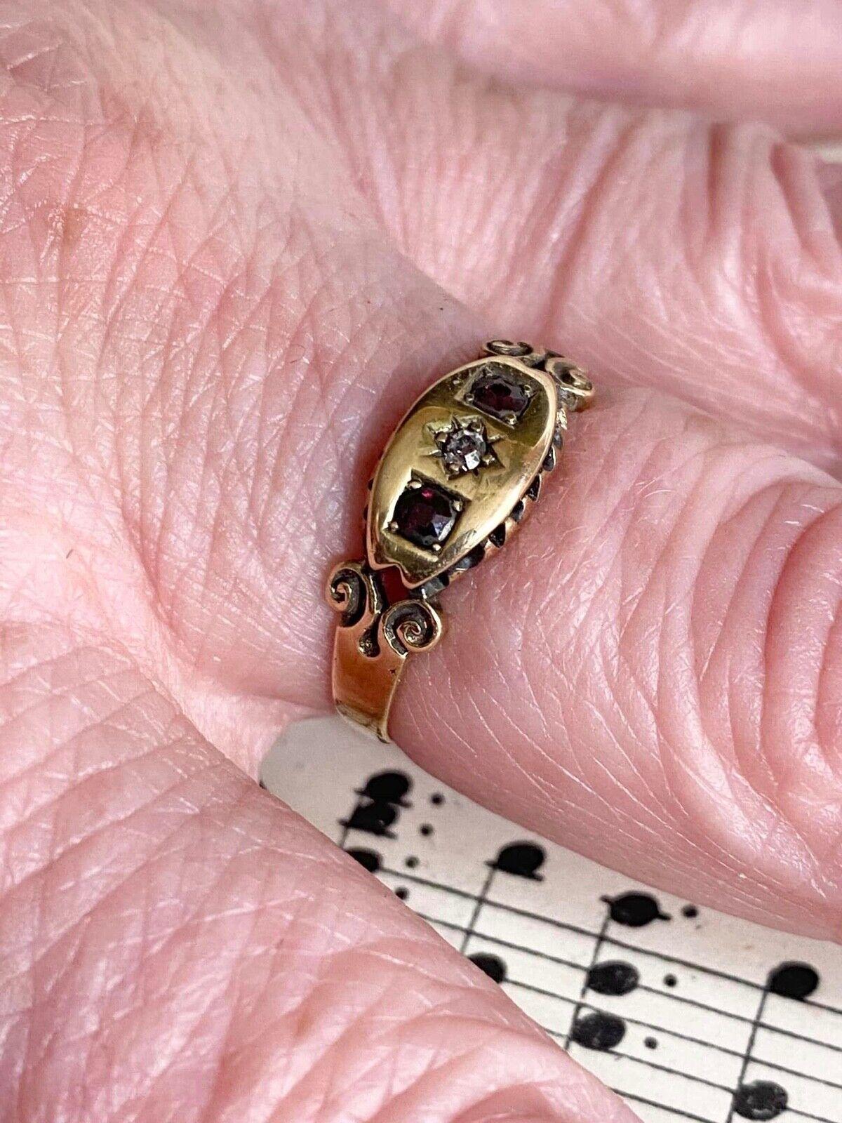 18ct Gold Garnet and Diamond Edwardian Ring Size O