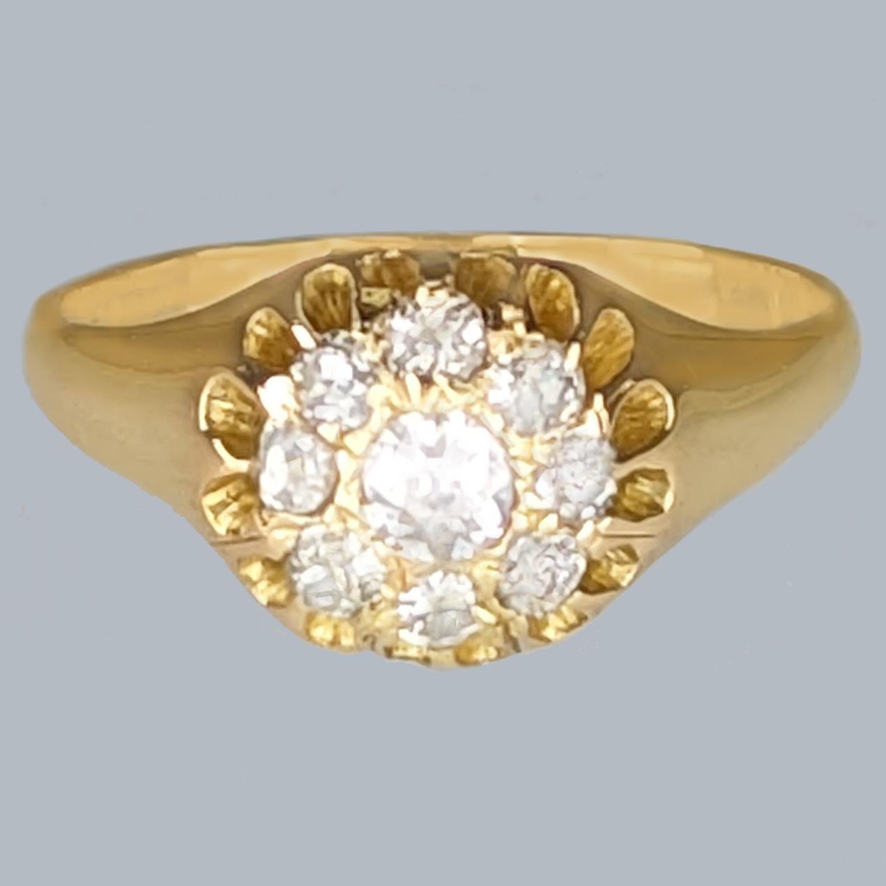 18ct Gold Old Mine Cut Diamond Cluster Ring Hallmarked London 1911 Antique Ring (1 of 7)