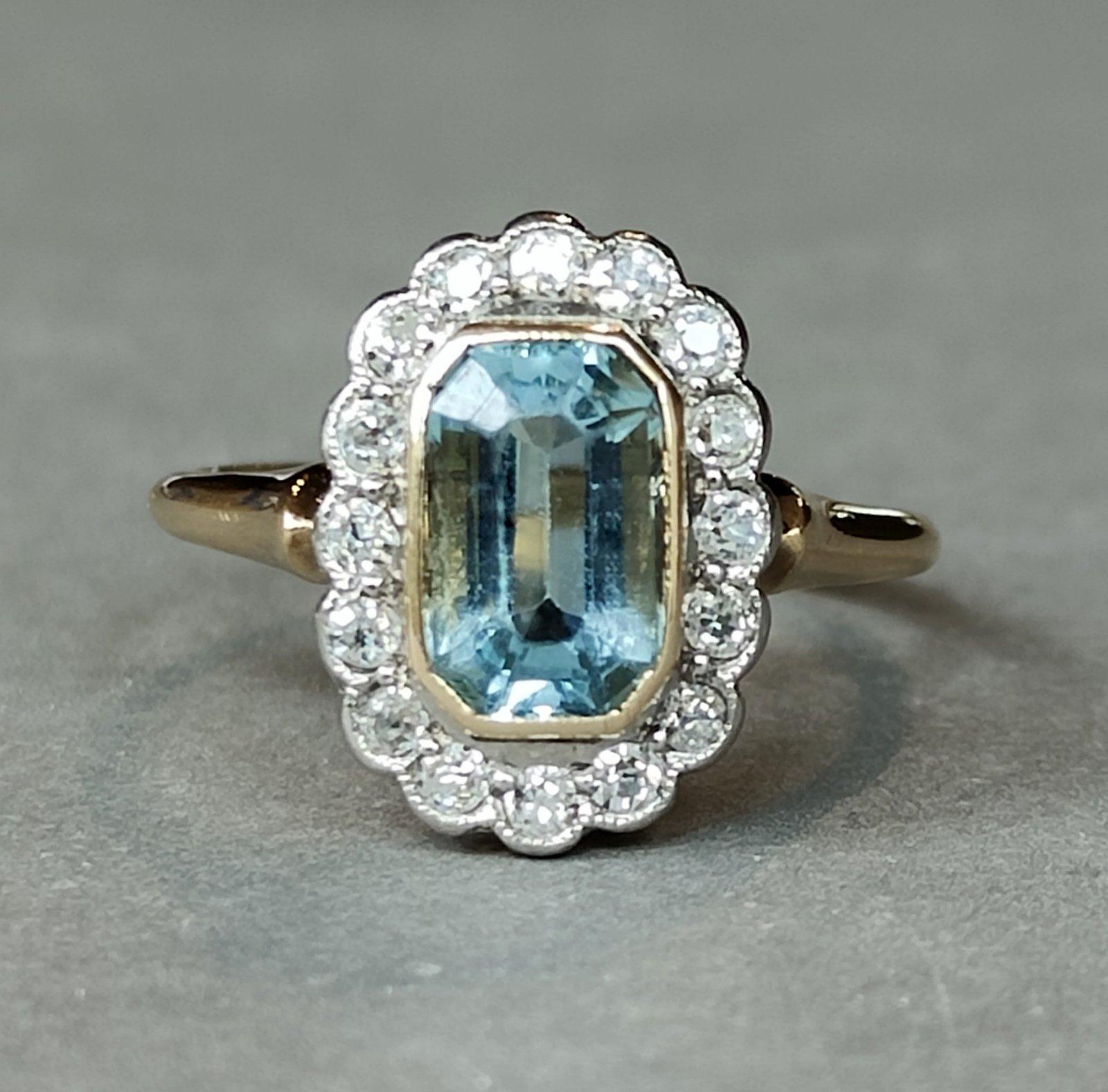 18ct Gold Platinum Aquamarine Diamond Engagement Ring