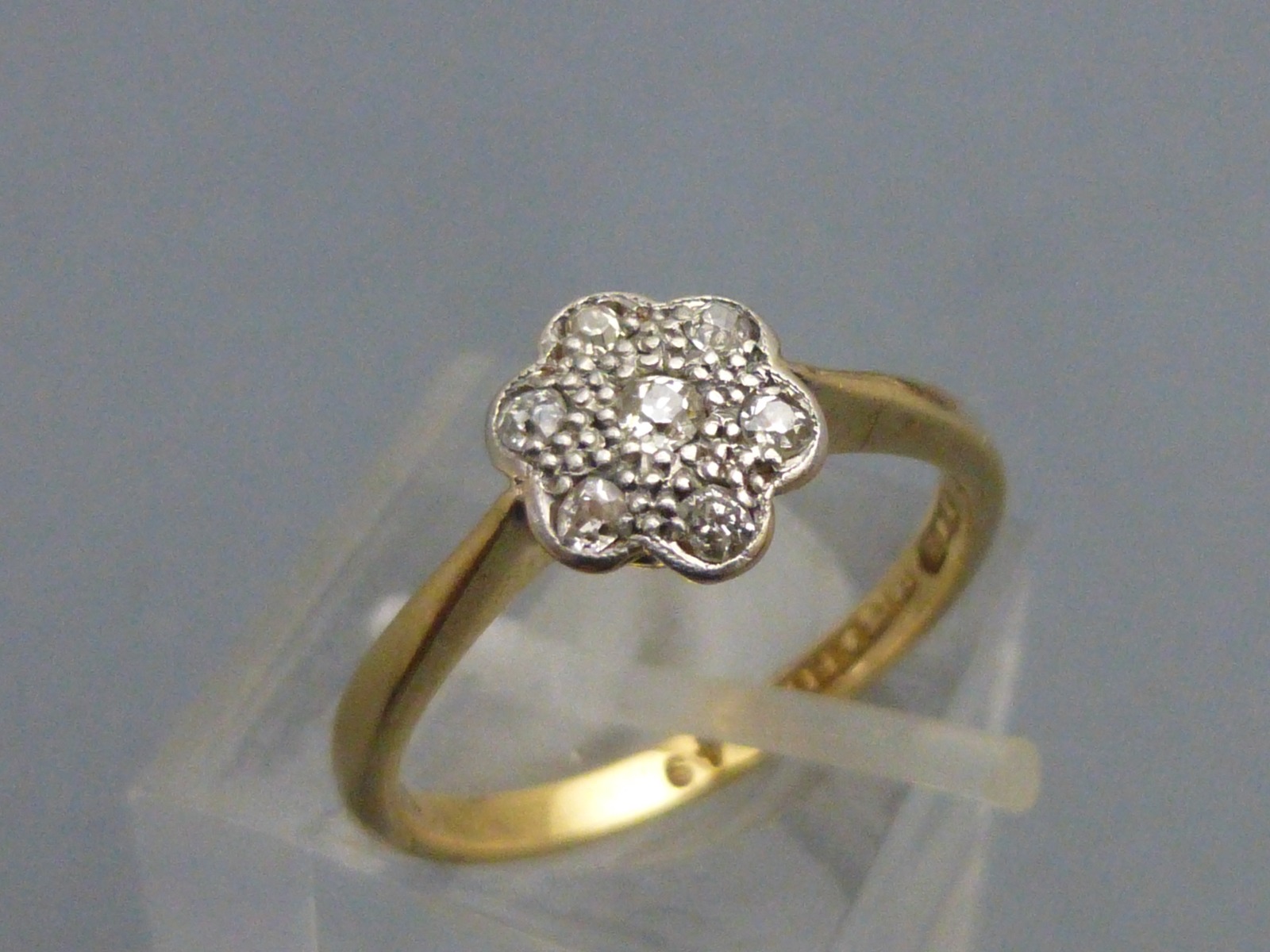 18ct Gold, Platinum & Diamond Flower Head Ring