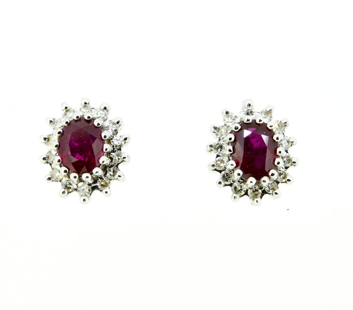 18ct Gold Ruby & Diamond Cluster Earrings