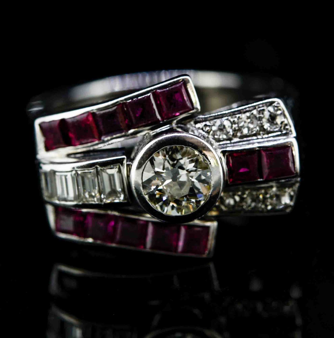 18ct White Gold Art Deco Ruby & Diamond Cocktail Ring