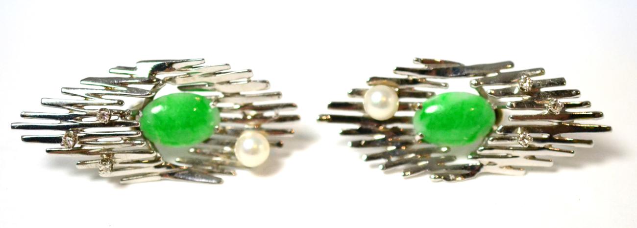 18ct White Gold, Jade, Diamond & Pearl Earrings