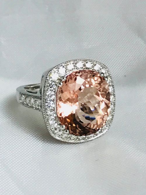 18ct White Gold Morganite '15ct' & Diamond '1ct' 11.2g Size N
