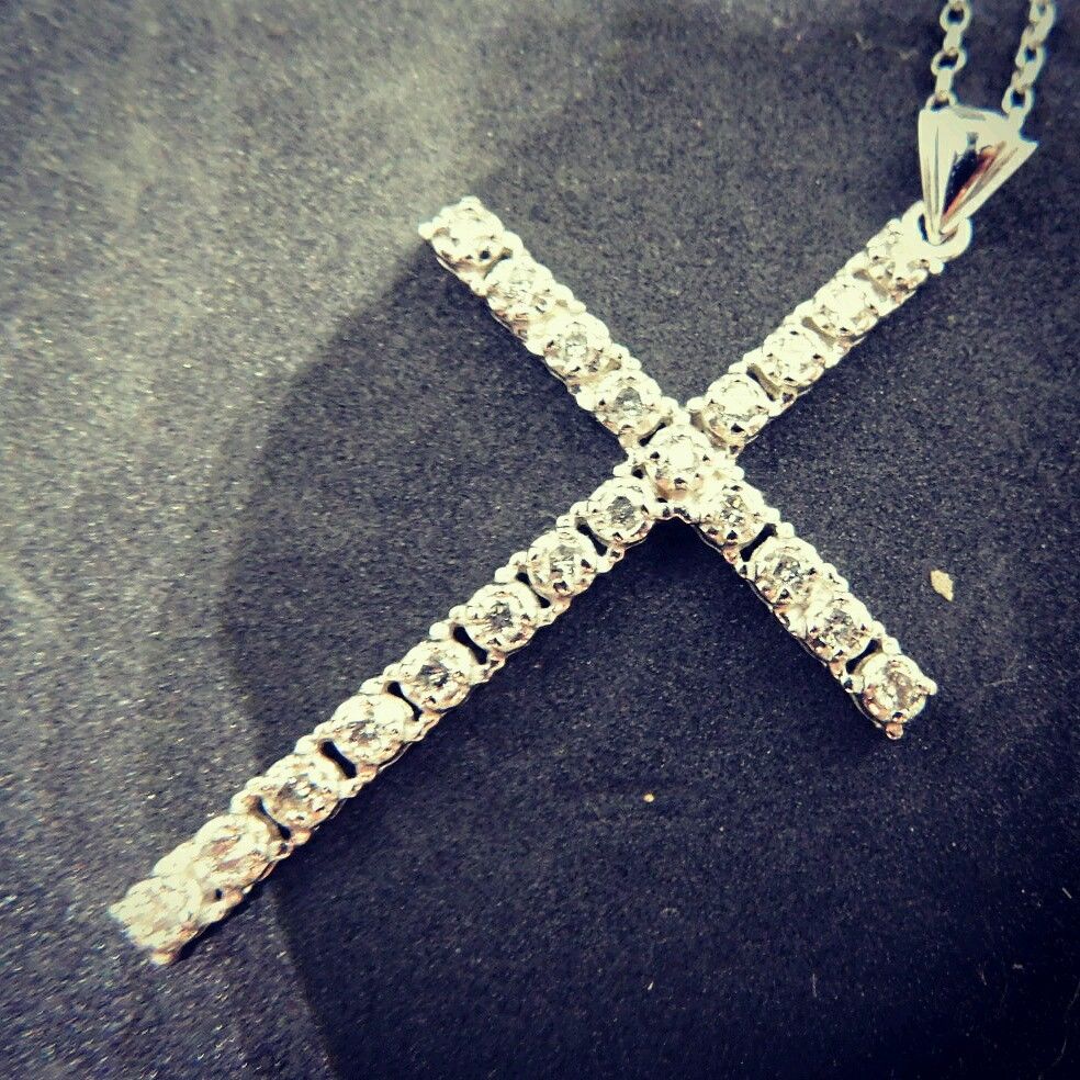 18ct White Gold Set Cross Pendant with Round Brilliant Cut Diamonds