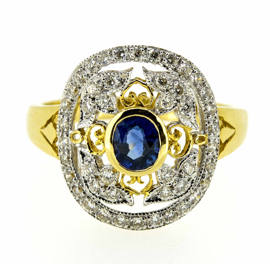 18ct Yellow Gold Antique Style Sapphire & Diamond Cluster Ring