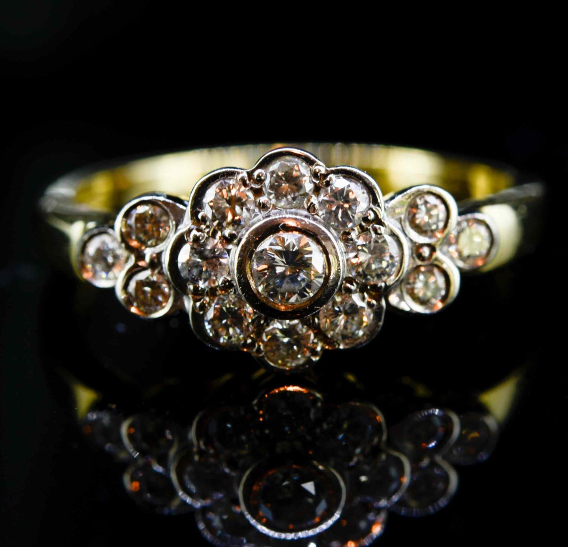 18ct Yellow Gold Diamond Fancy Cluster Ring