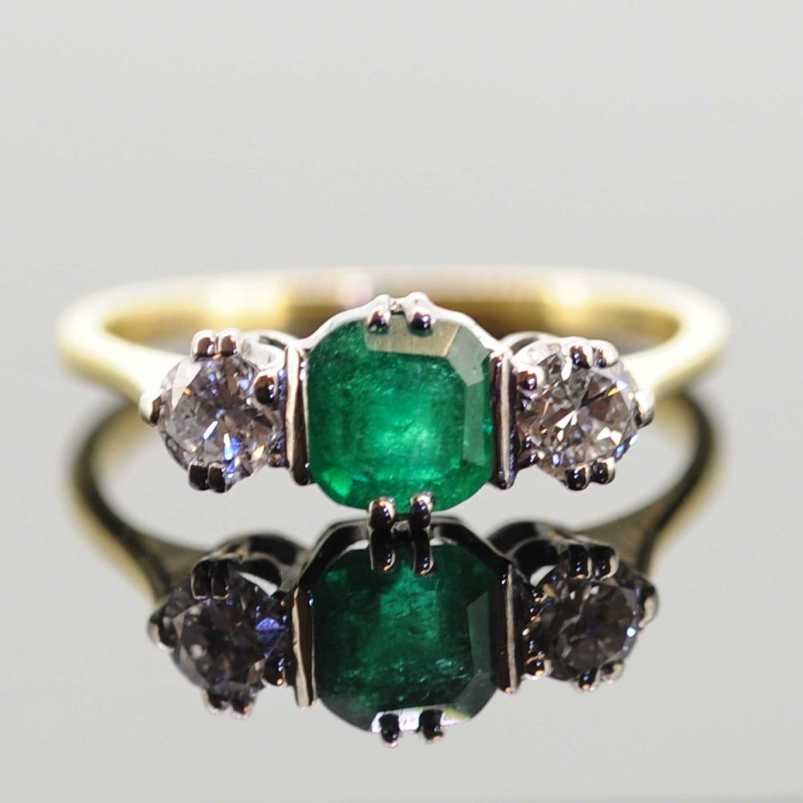 18ct Yellow Gold Emerald & Diamond Three Stone Ring