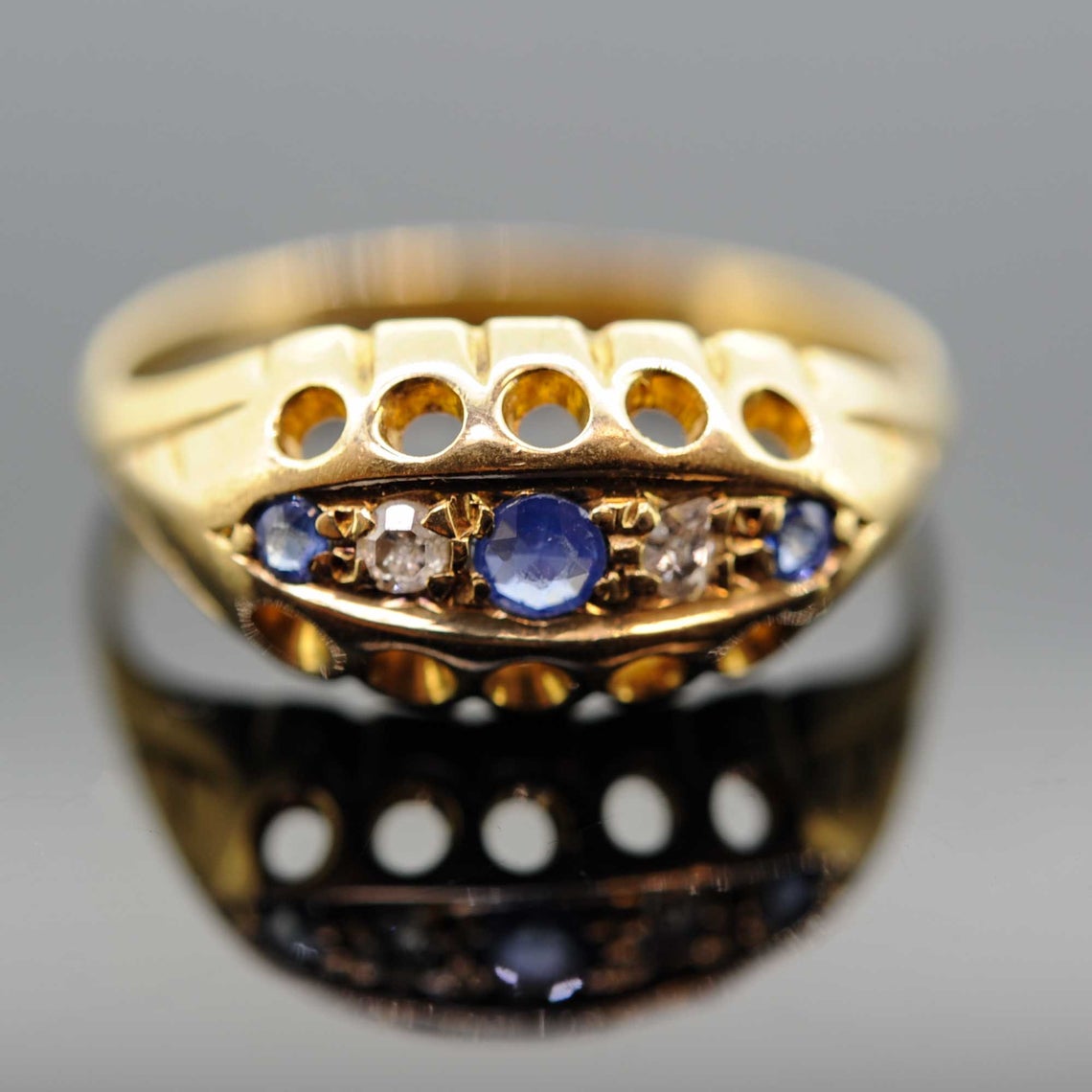 18ct Yellow Gold Sapphire & Diamond Five Stone Ring