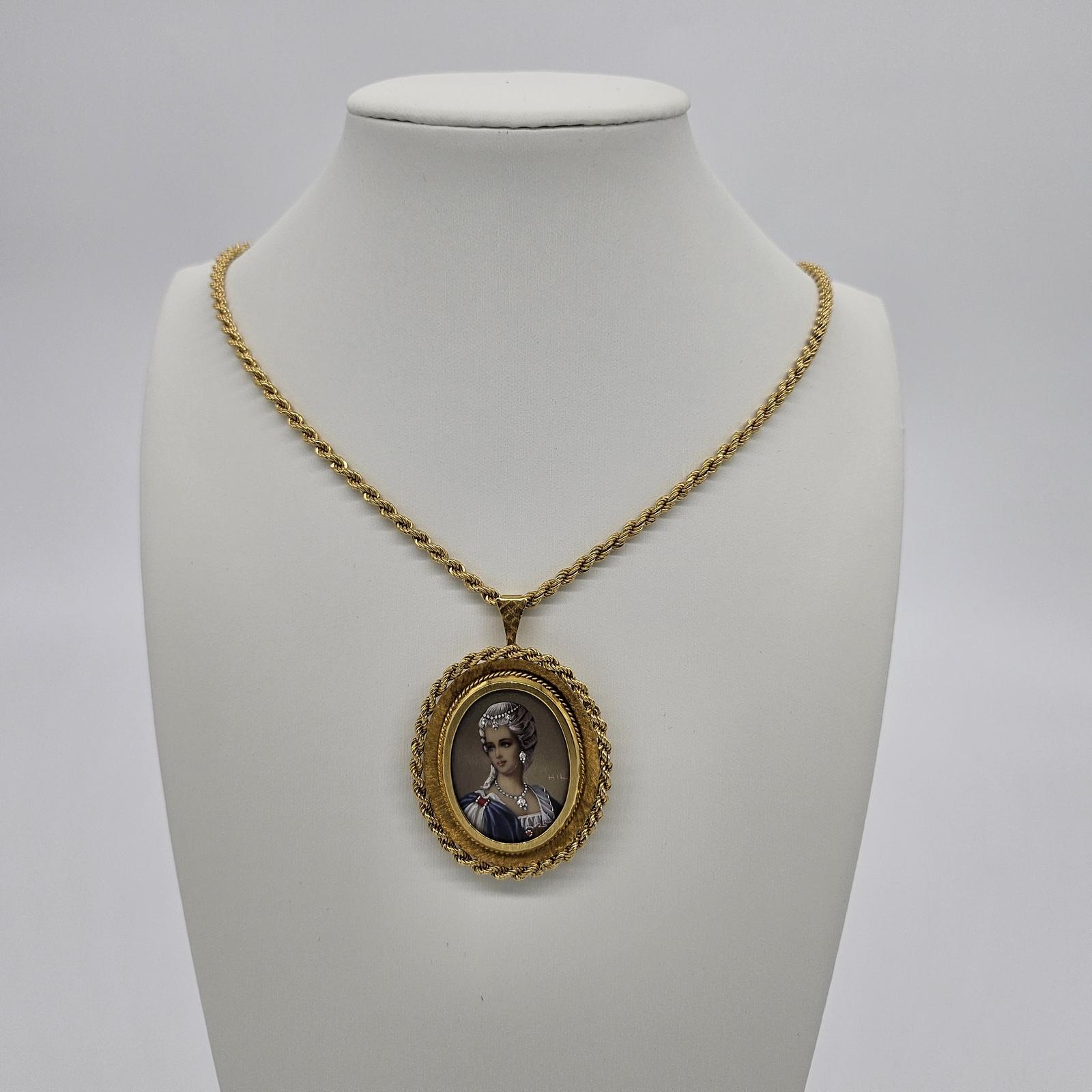 18ct Yellow Gold Vintage Mounted Miniture Portrait Pendant/Brooch