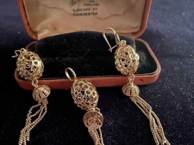 18k Gold Plated Moroccan Style Cage Drop Earrings & Matching Pendant