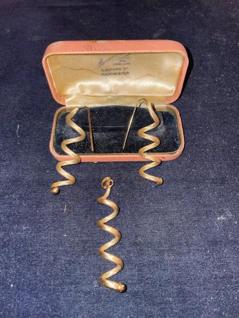 18K Gold Plated Twisted Spiral Earrings & Matching Pendant