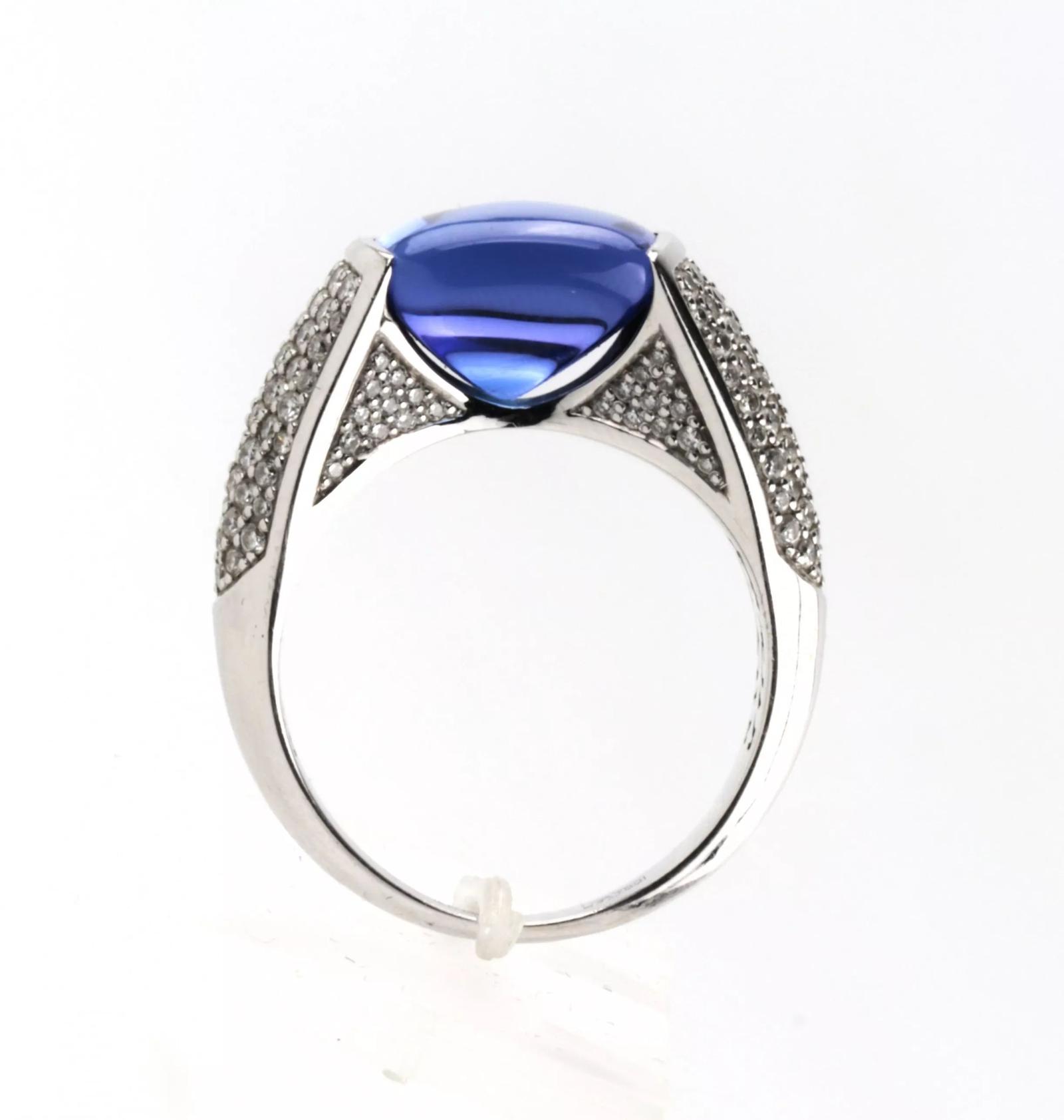 18K white gold ring with diamonds and tanzanite.