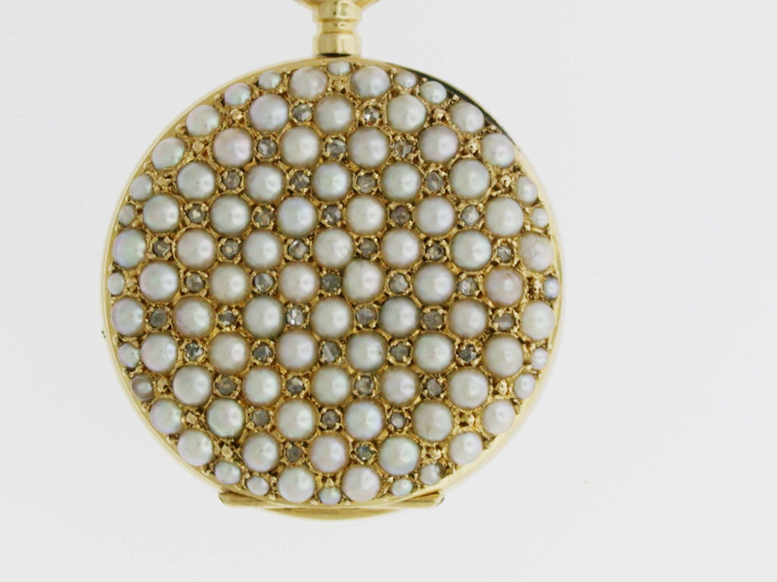 18Kt Rose Gold '750' Pearl & Diamond Ladies Fob Pocket Watch with Bow Brooch (1 of 1)