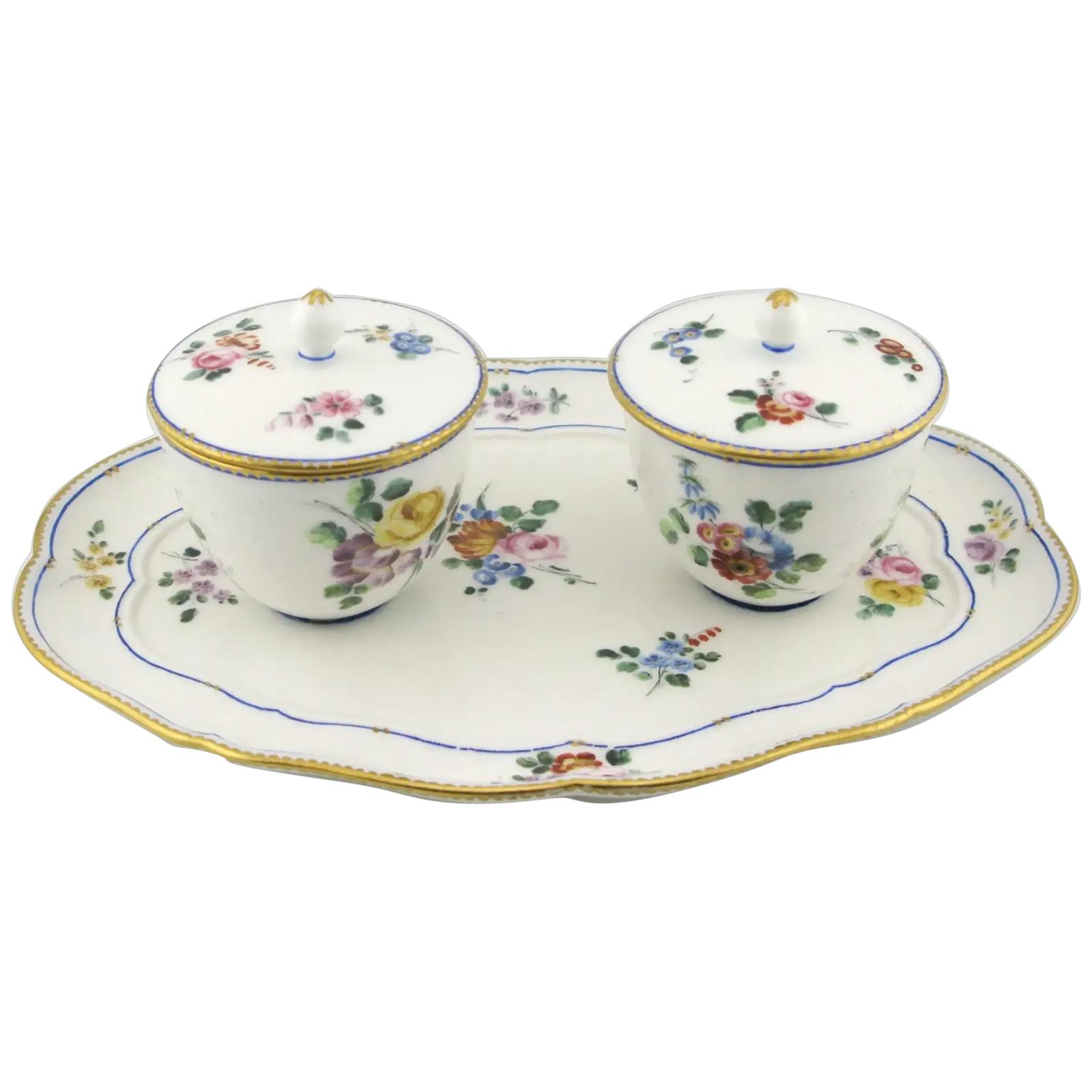 18th Century 1764 Sevres Porcelain Double Jam Pots on Stand