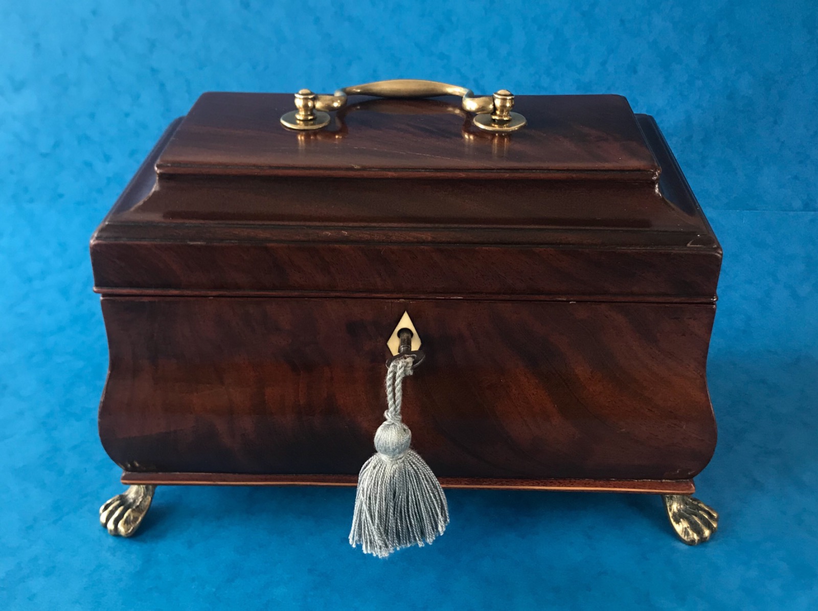 18th Century 1770 Bombe Fronted Mahogany Twin Lidded Tea Caddy