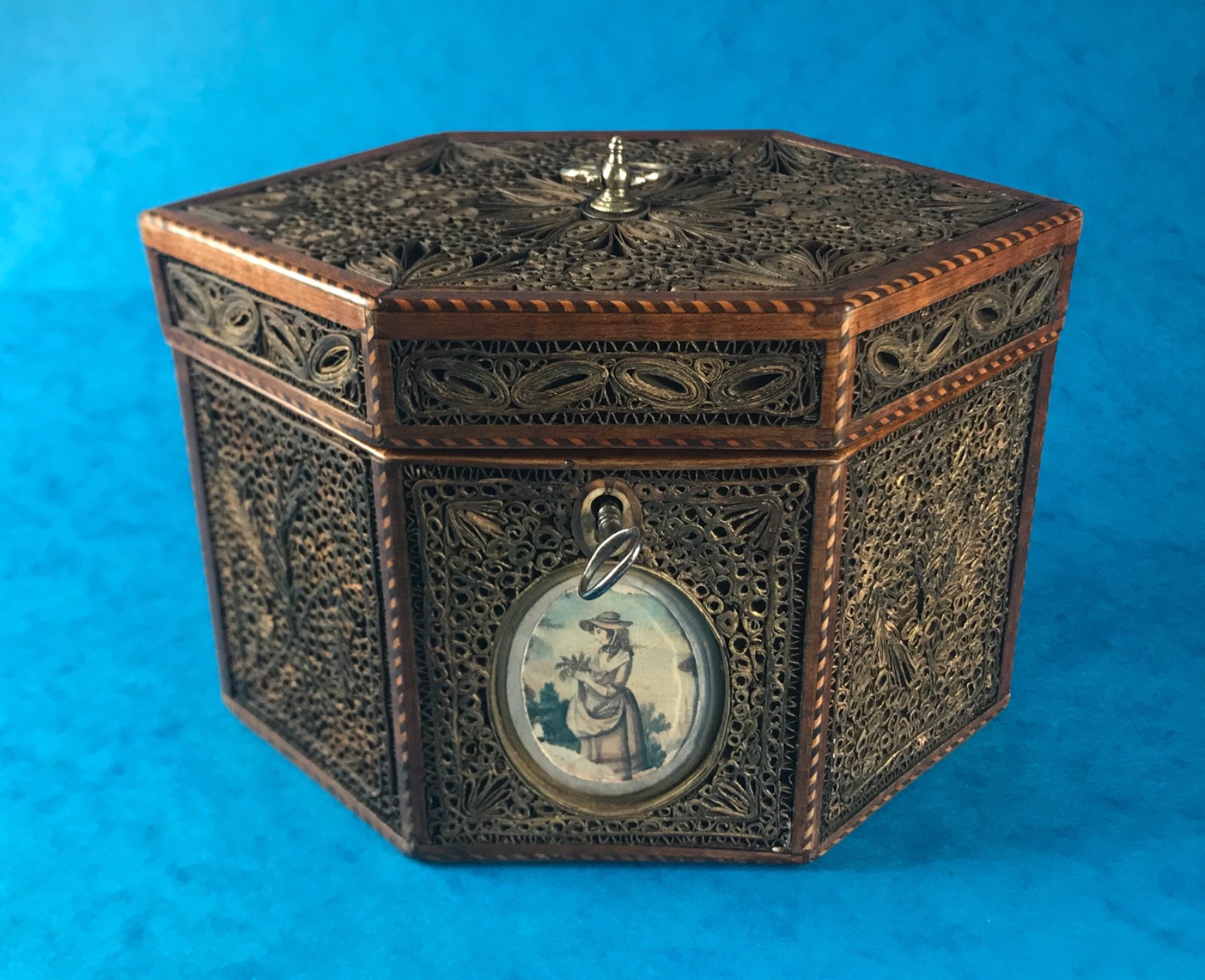 18th Century 1785 Rolled Paper Inlaid Tea Caddy