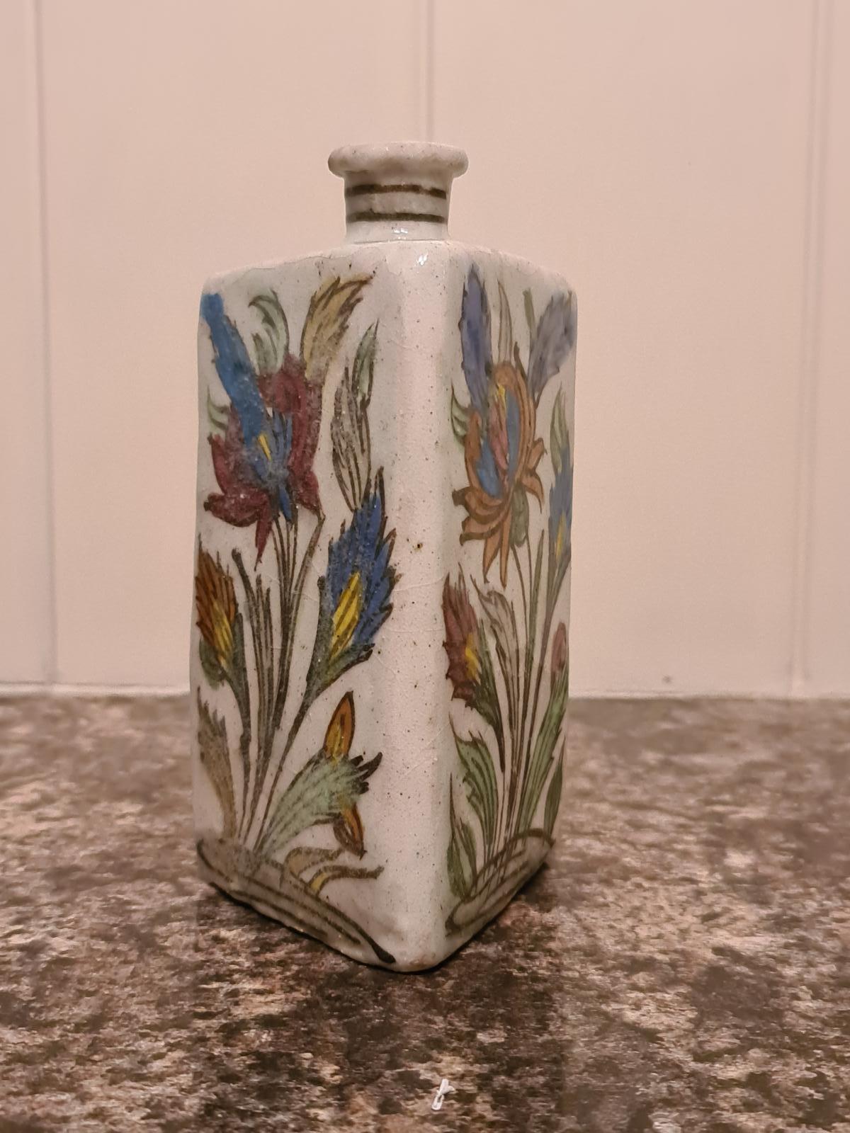18th Century Antique Iznik Stoneware Vase Flask Bottle Persian Ottoman Islamic