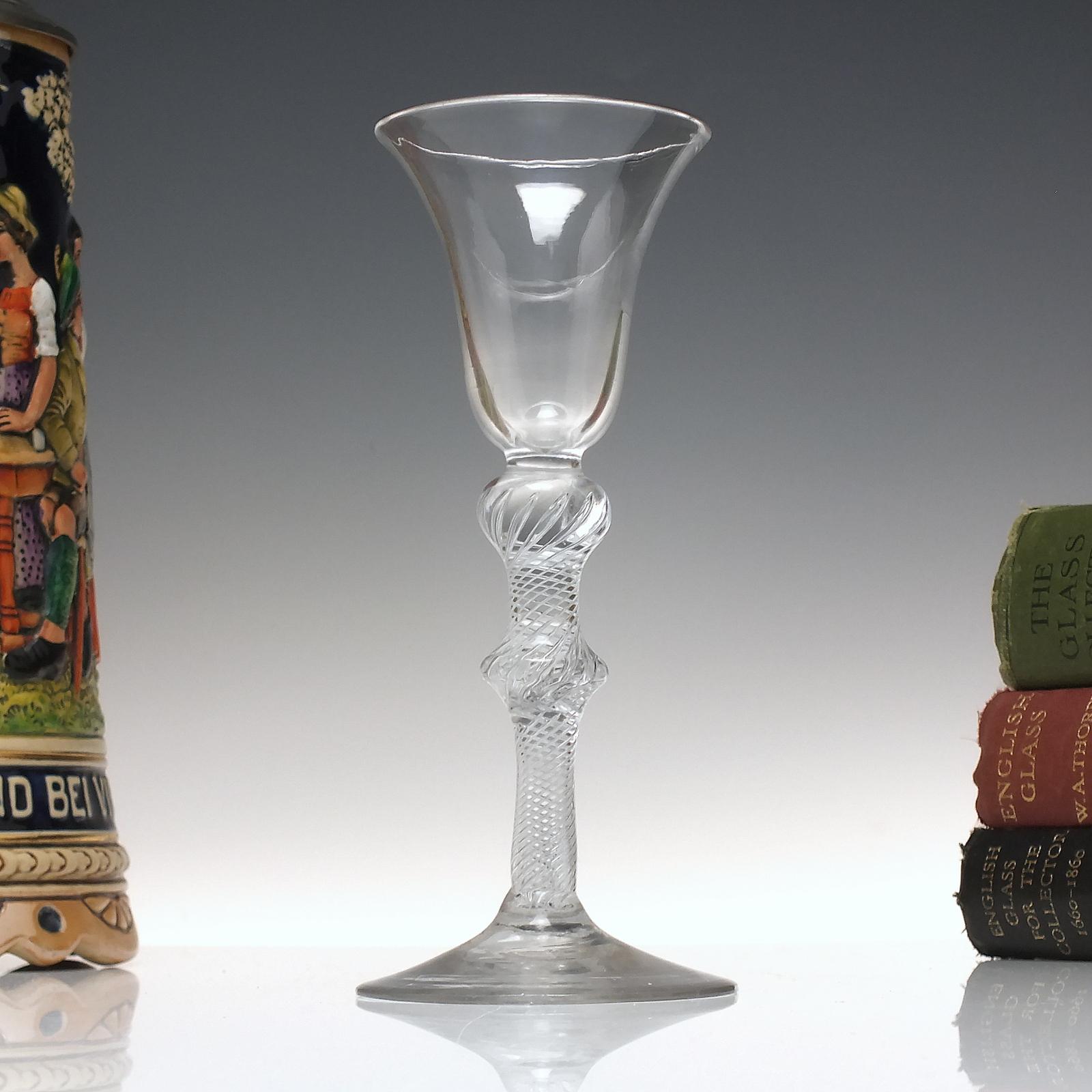 18th Century Bell Bowl Double Knop Air Twist Wine Glass c.1750
