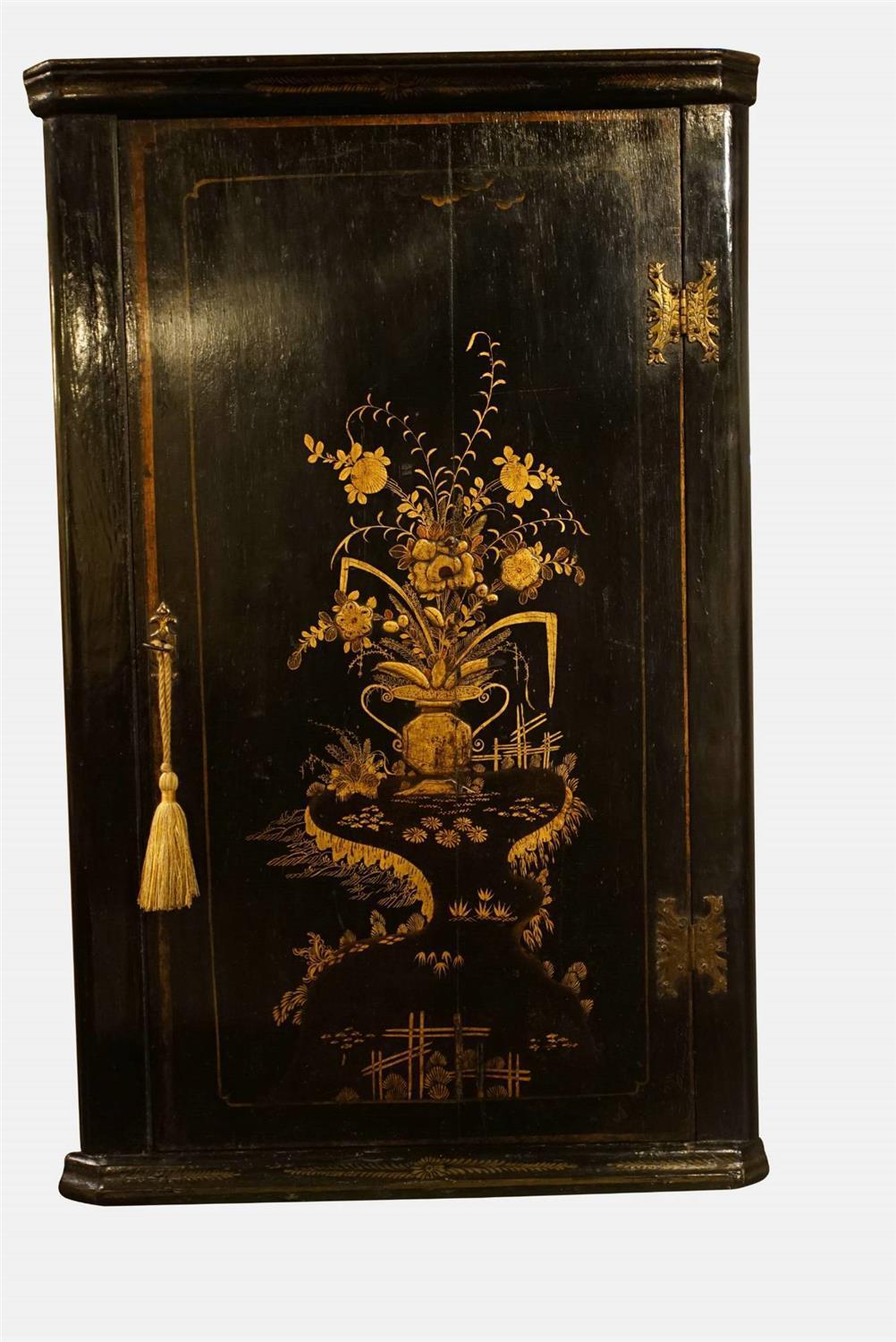 18th Century Black Lacquered Chinoiserie Corner Cupboard (1 of 1)