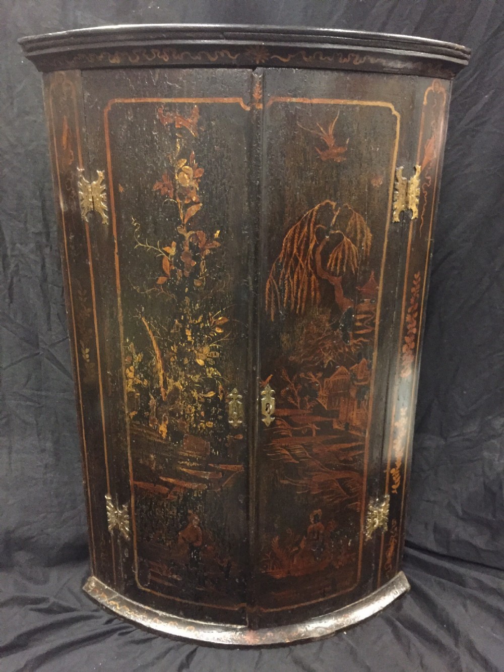 18th Century Bow Fronted Lacquered Chinoiserie Corner Cupboard