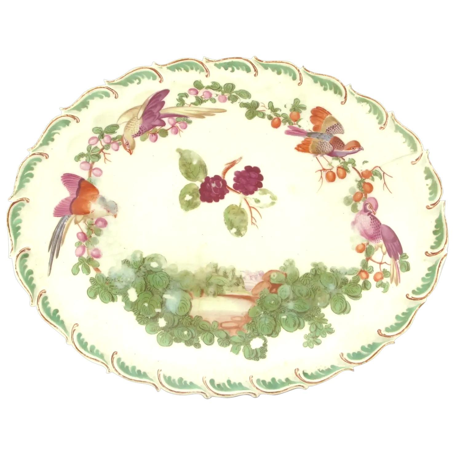 18th Century Chelsea Red Anchor Porcelain Dessert Dish, Birds and Fruit