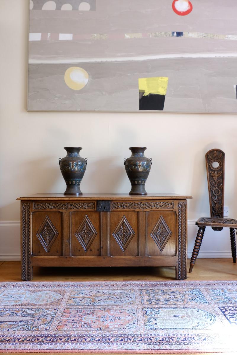 18th Century Coffer With Four Lozenge Carved Panels