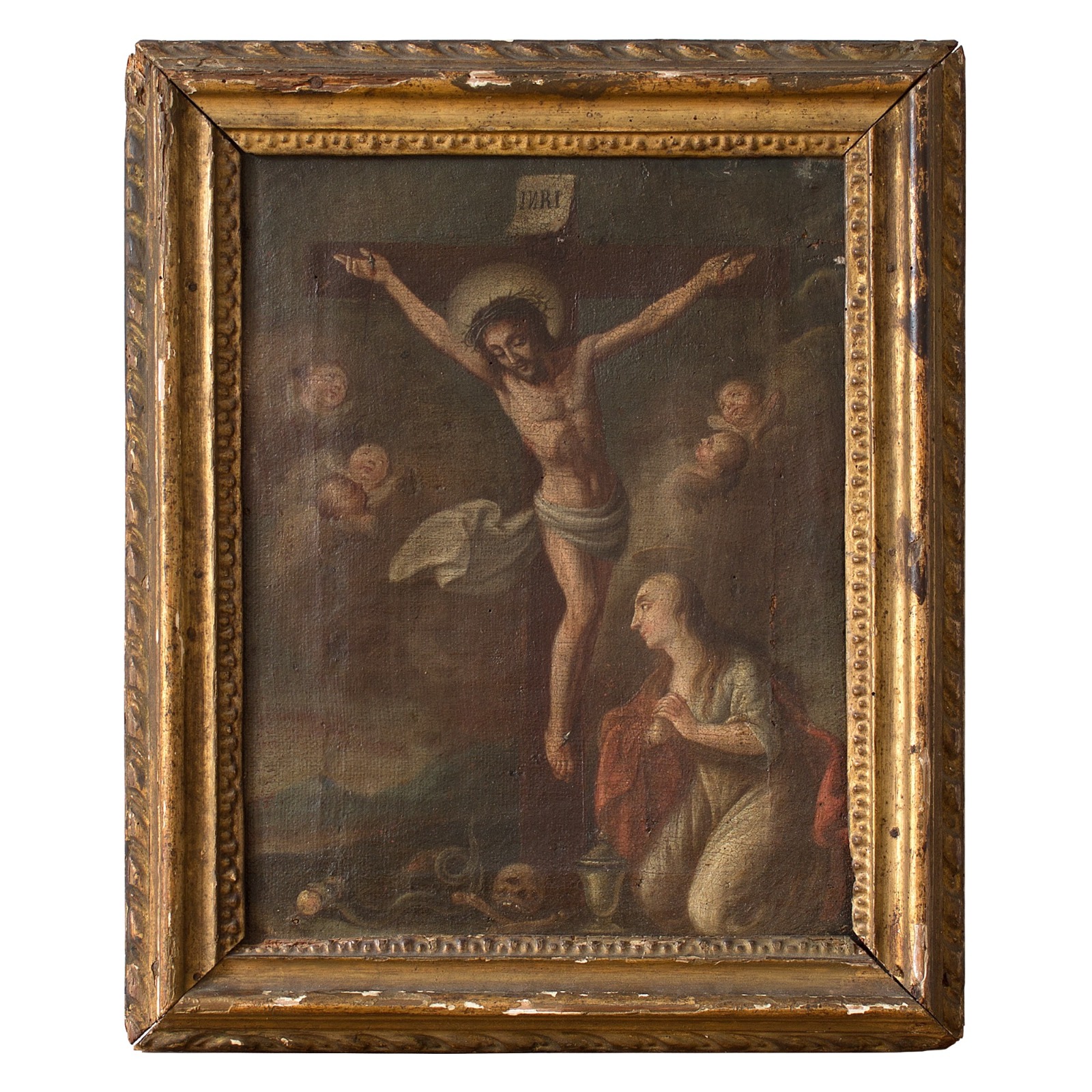 18th Century Crucifixion with the Virgin Mary & Cherubs
