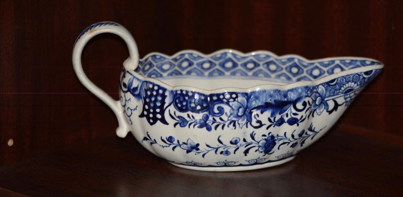 18th Century Derby Blue & White Chinoiserie Sauce Boat