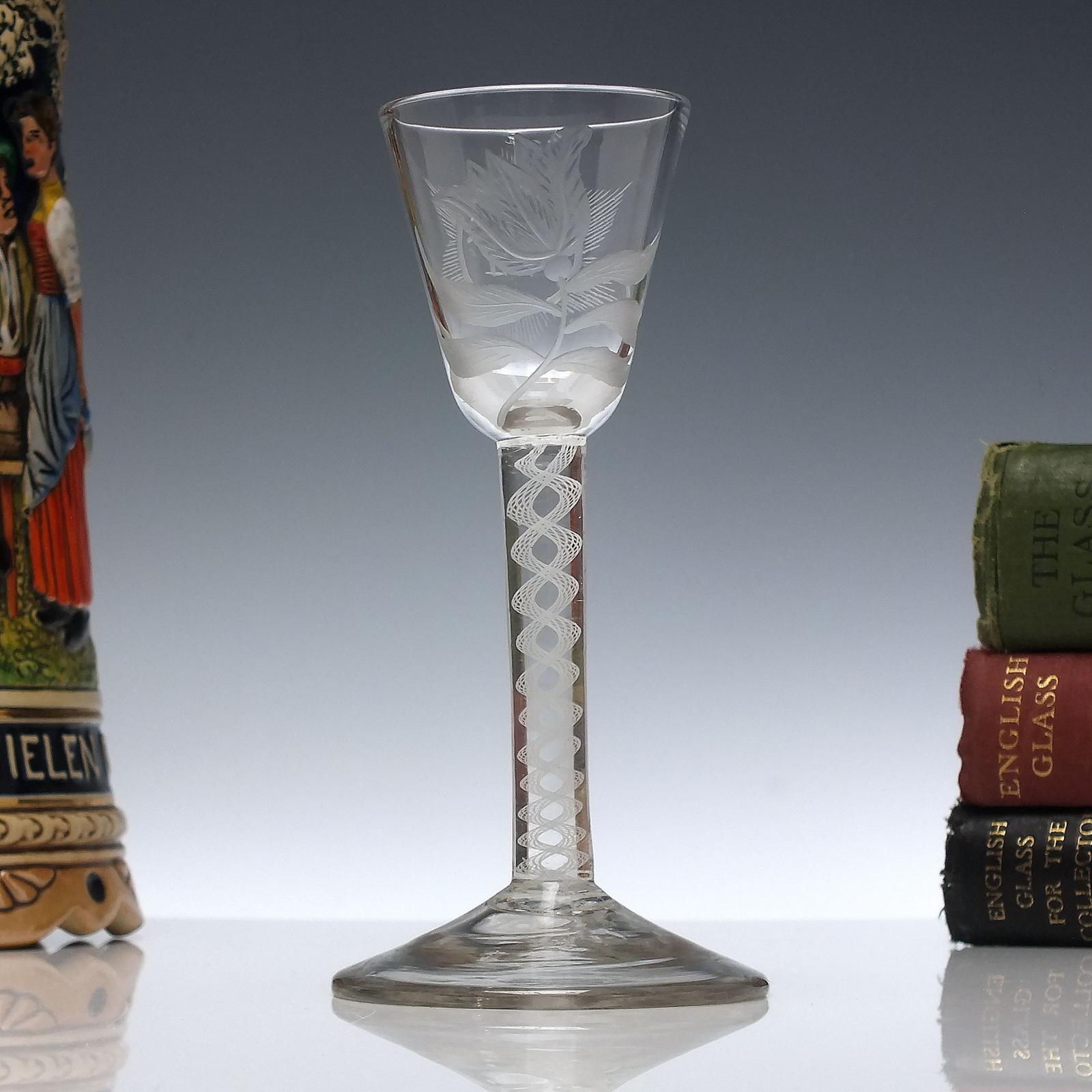 18th Century Engraved Single Series Opauqe Twist Wine Glass c.1760