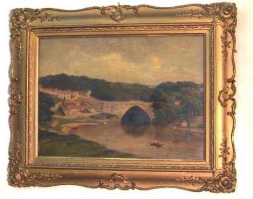 18th Century 'European River Bridge Scene' Oil Painting on Canvas