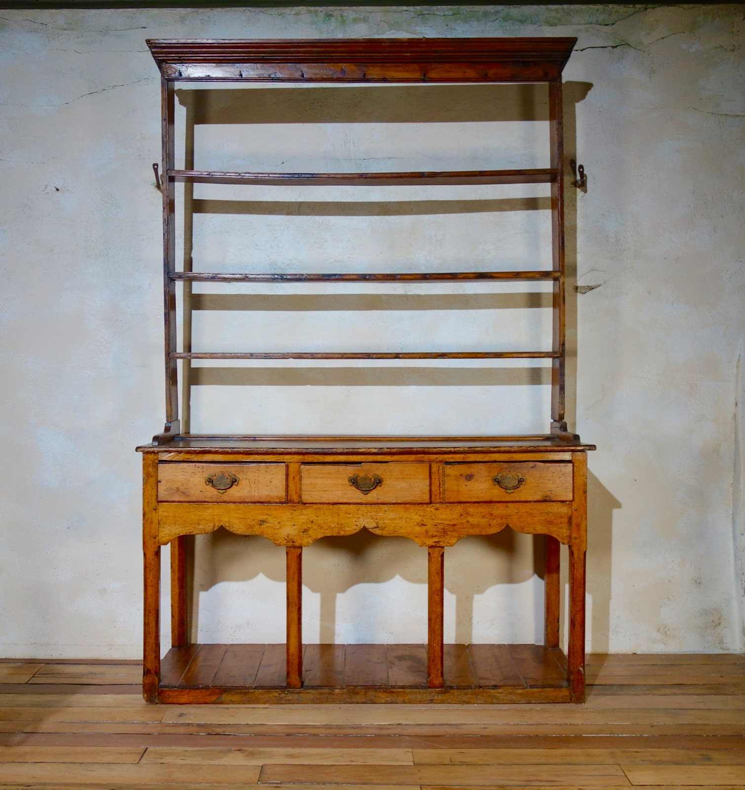 18th Century Farmhouse Fruitwood and Pine Pot Board Kitchen Dresser