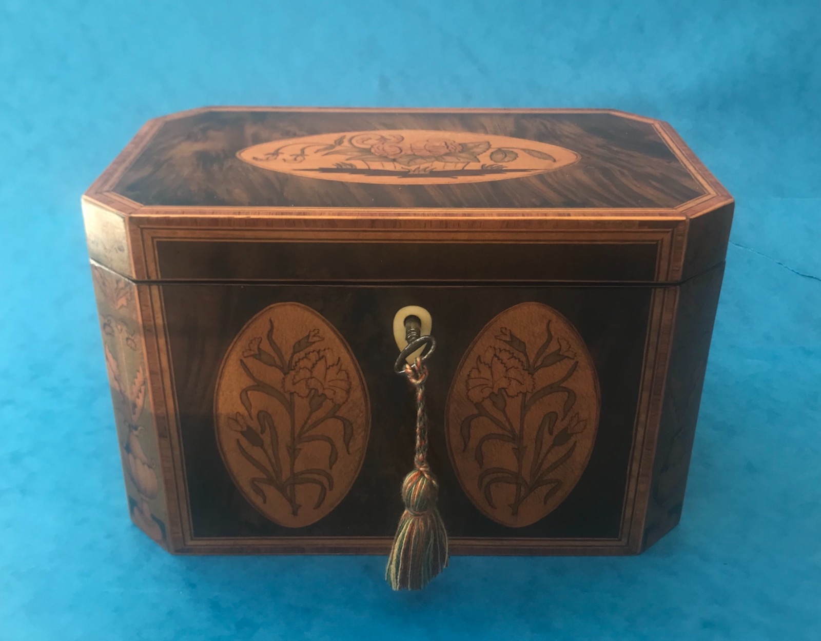 18th Century Figured Harewood Inlaid Twin Section Tea Caddy