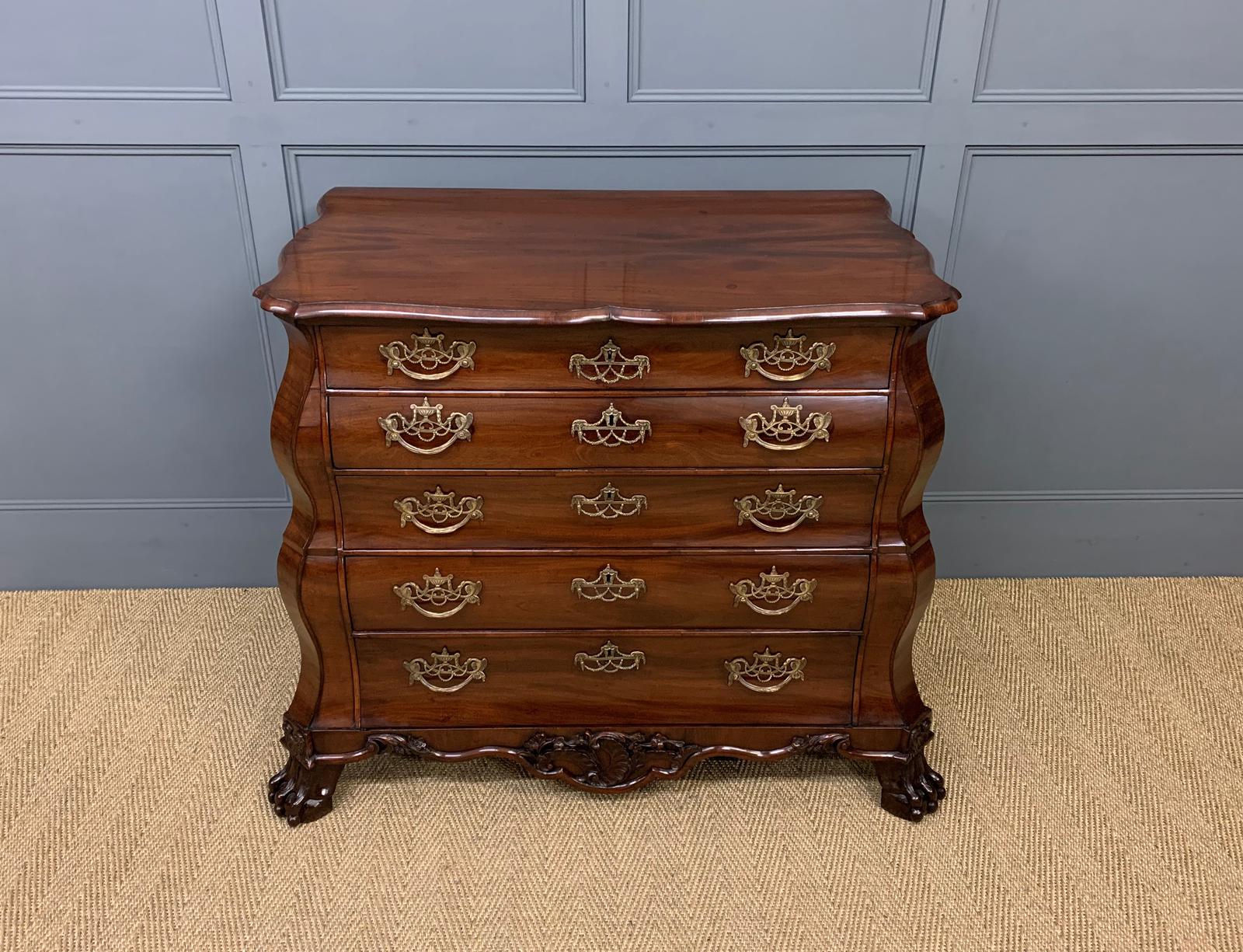 18th Century Figured Mahogany Dutch Bombe Chest
