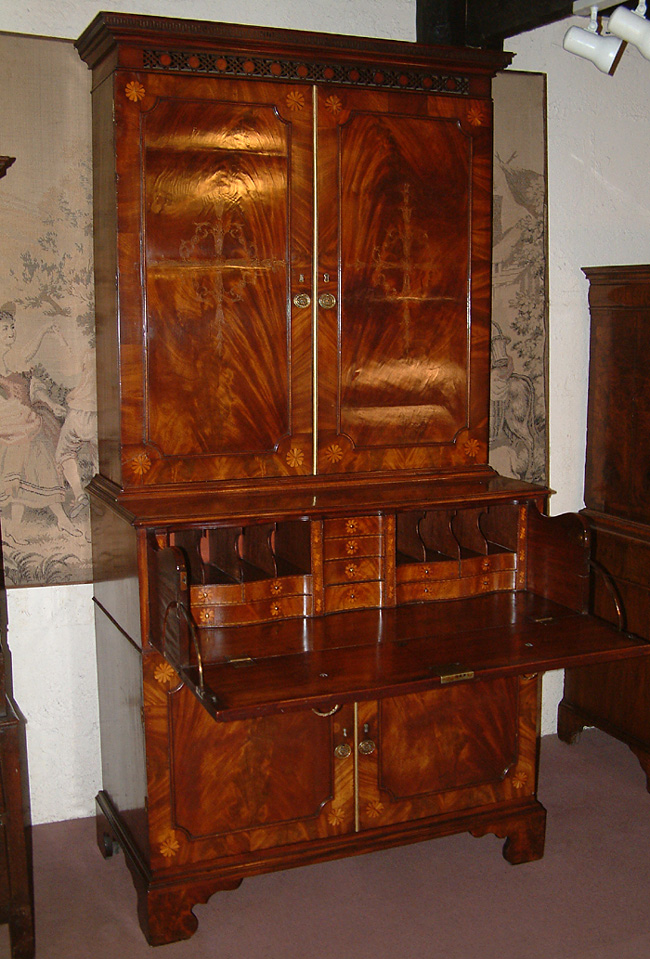 18th Century Figured Mahogany Secretaire Bookcase Cabinet C.1770