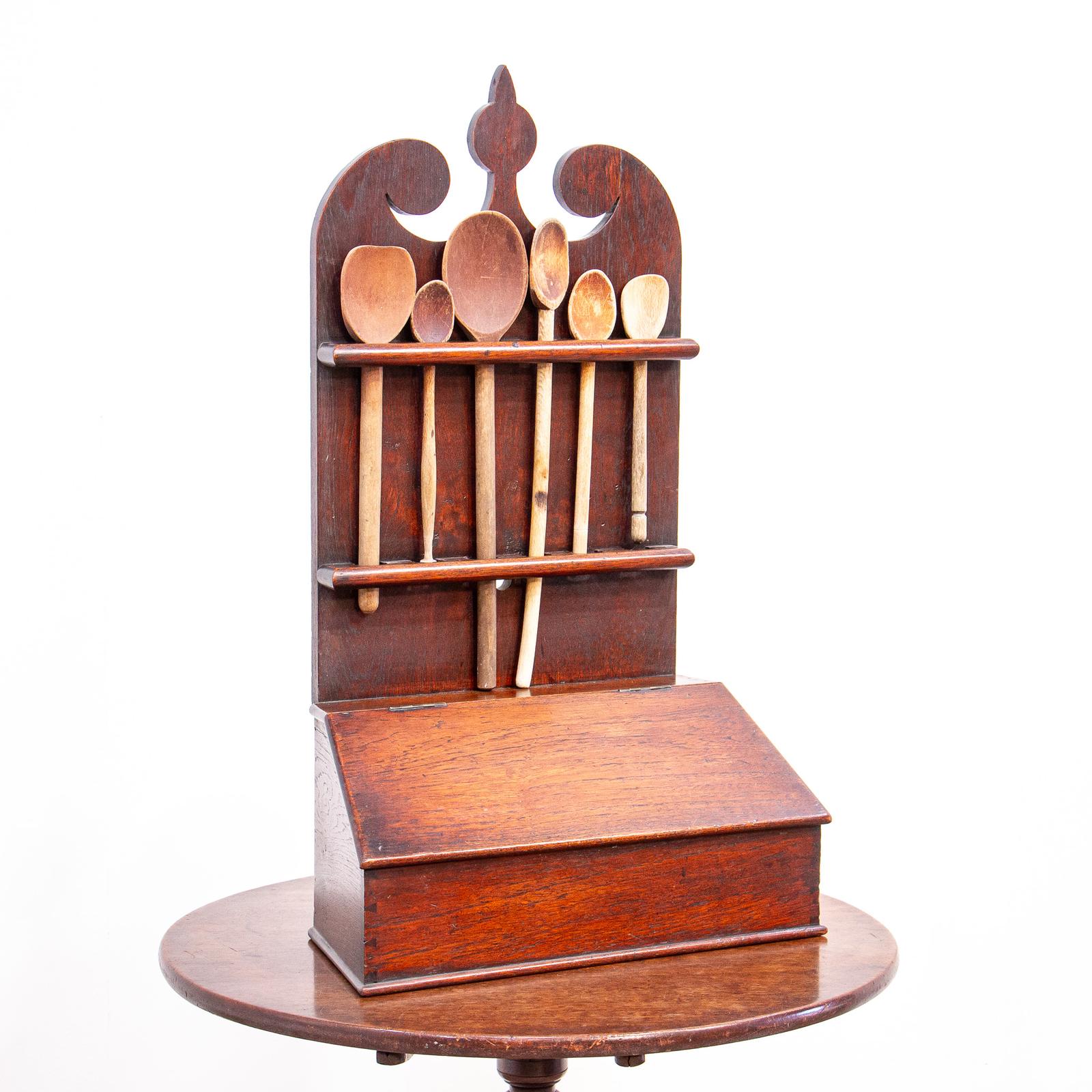 18th Century Georgian Oak Spoon Rack with Box