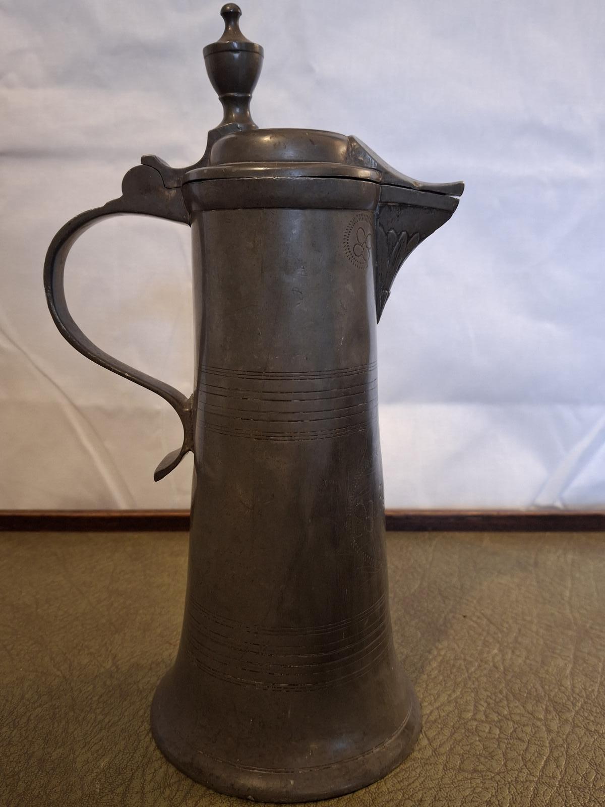 Jay's Antiques has clarified that the 18th Century German Pewter Wine Flagon Named and Dated (LA562522) is genuinely of the period declared with the date/period of manufacture being 1730 - 1750