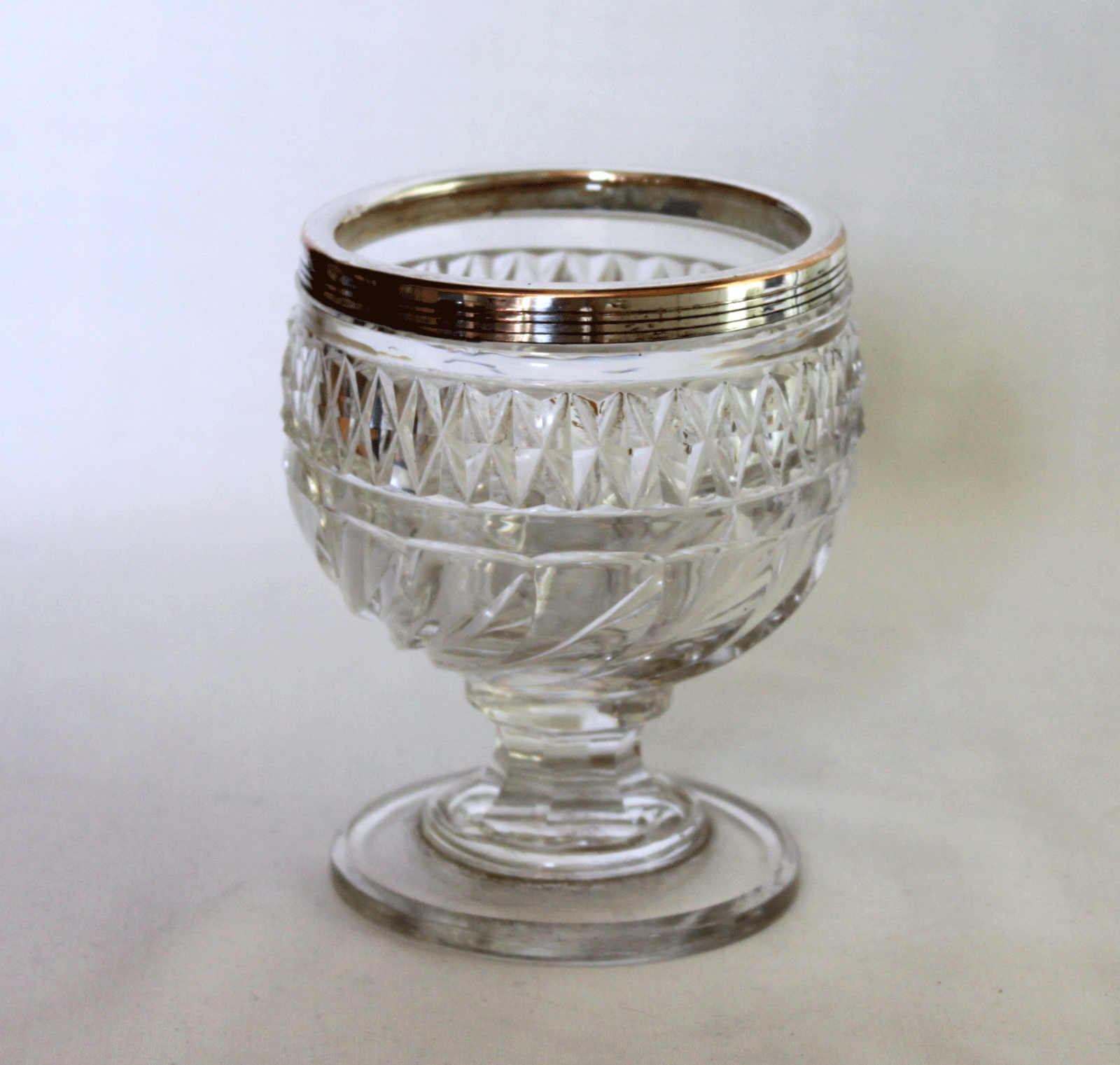 18th Century Glass Salt with Old Sheffield Plate Rim