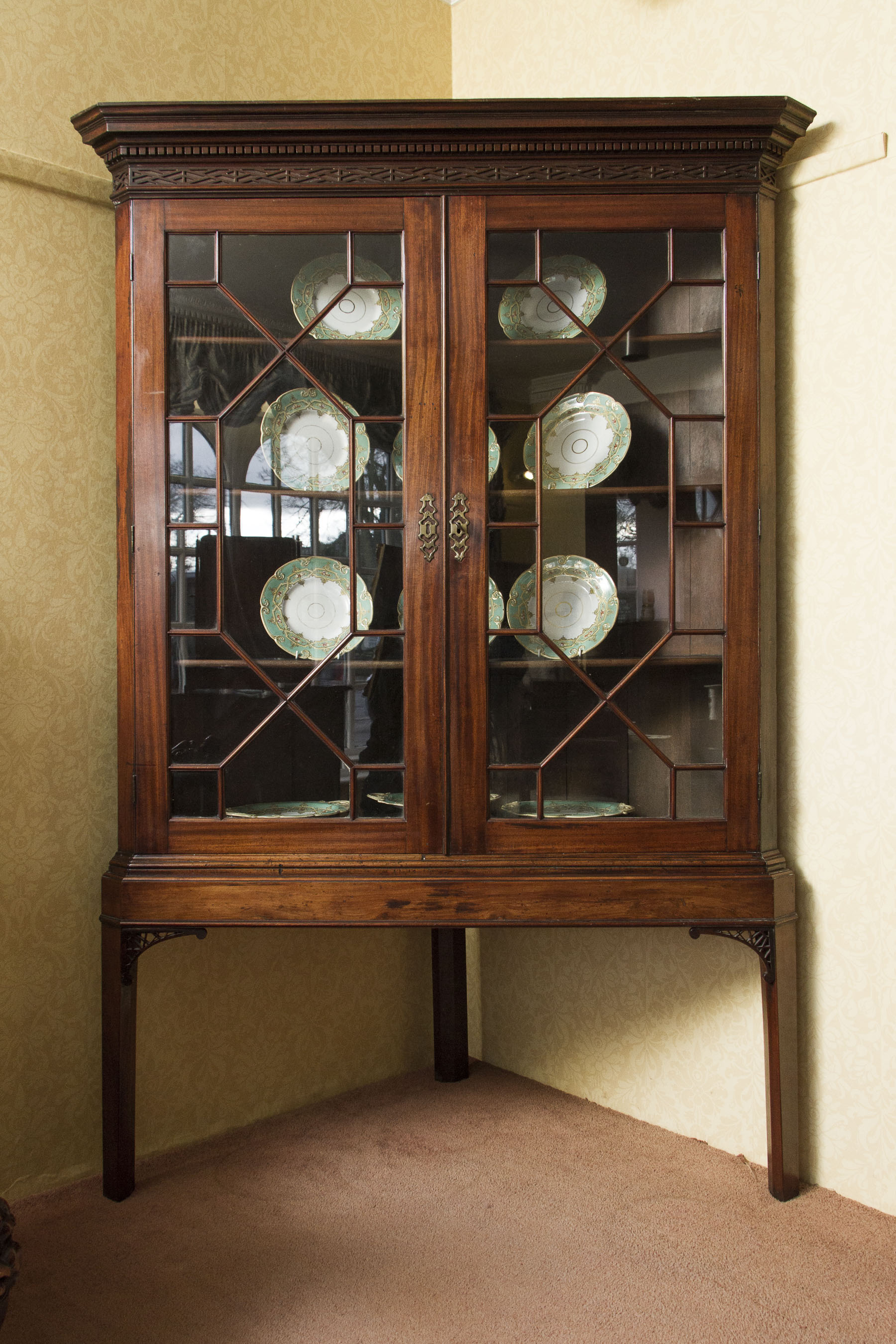 18th Century Glazed Corner Cabinet on Stand c.1770