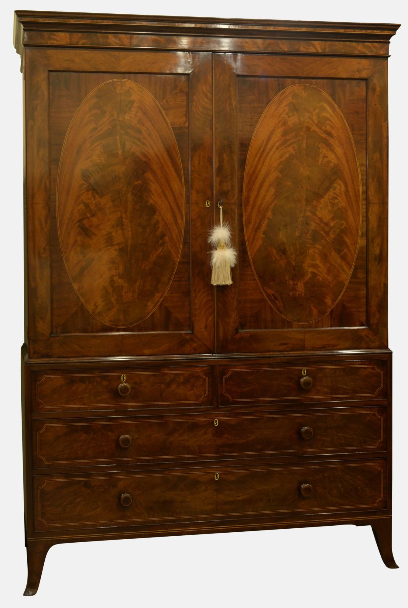 18th Century Inlaid Mahogany Linen Press (1 of 1)