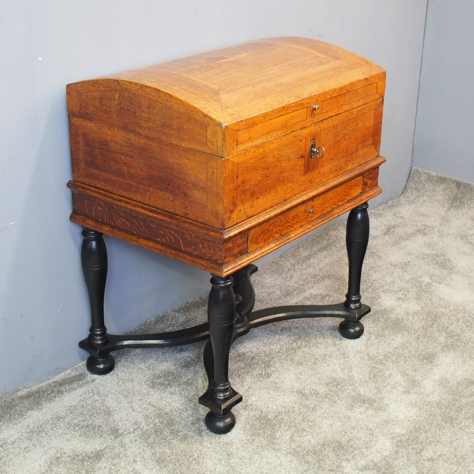 18th Century Inlaid Oak Trunk on Stand (1 of 1)