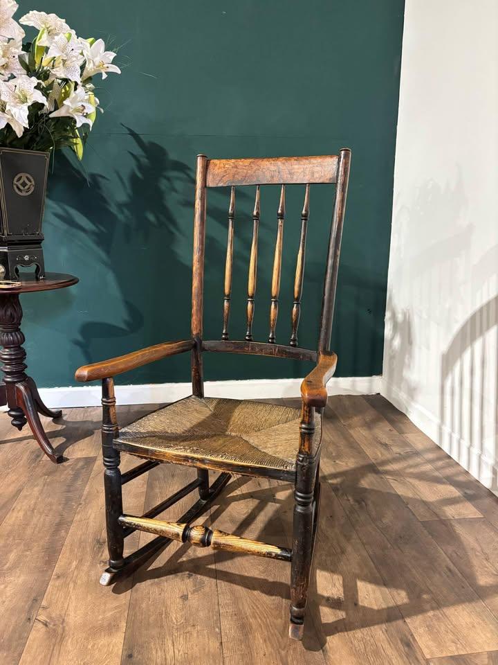 18th Century Lancashire Spindle Back Rocking Chair