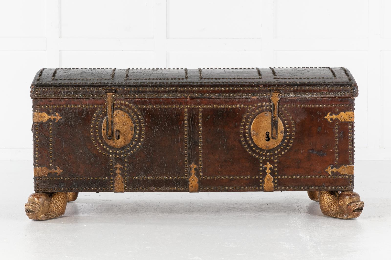 18th Century Leather Bound Spanish Trunk (1 of 9)
