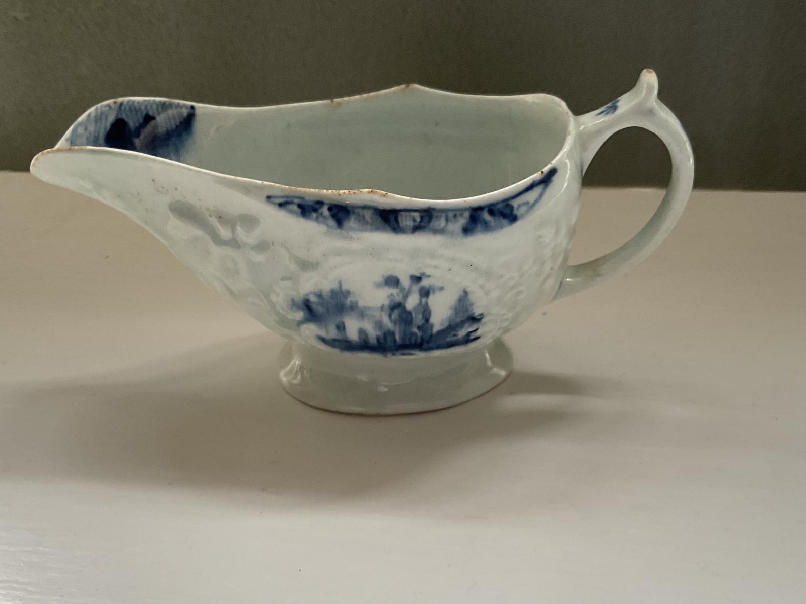 This 18th Century Lowestoft Sauceboat is located in Derbyshire, United Kingdom